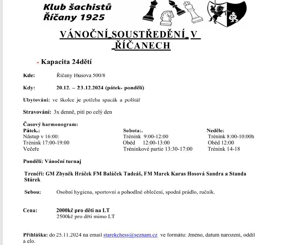Soustředění Říčany 20-23.12.2024